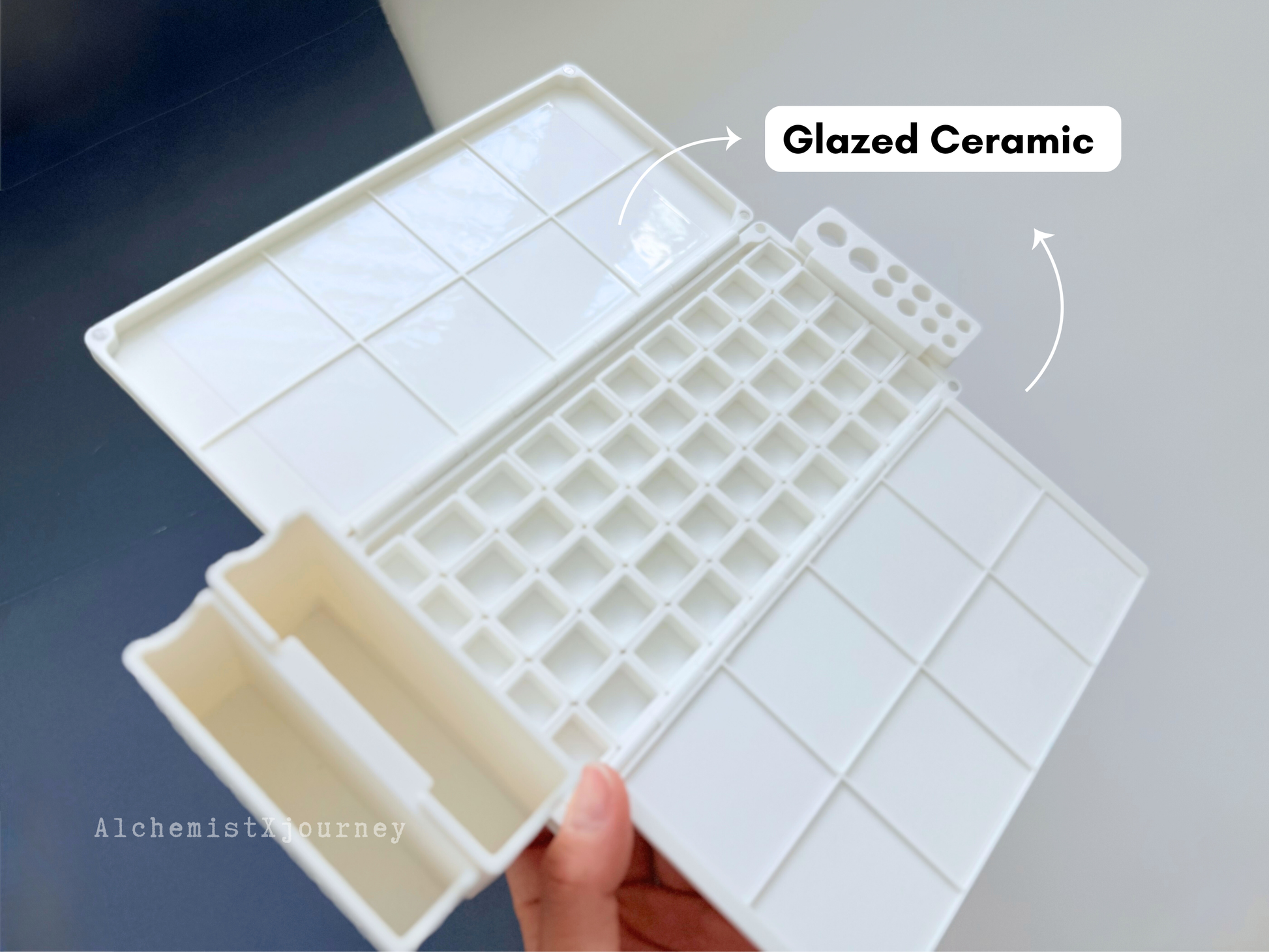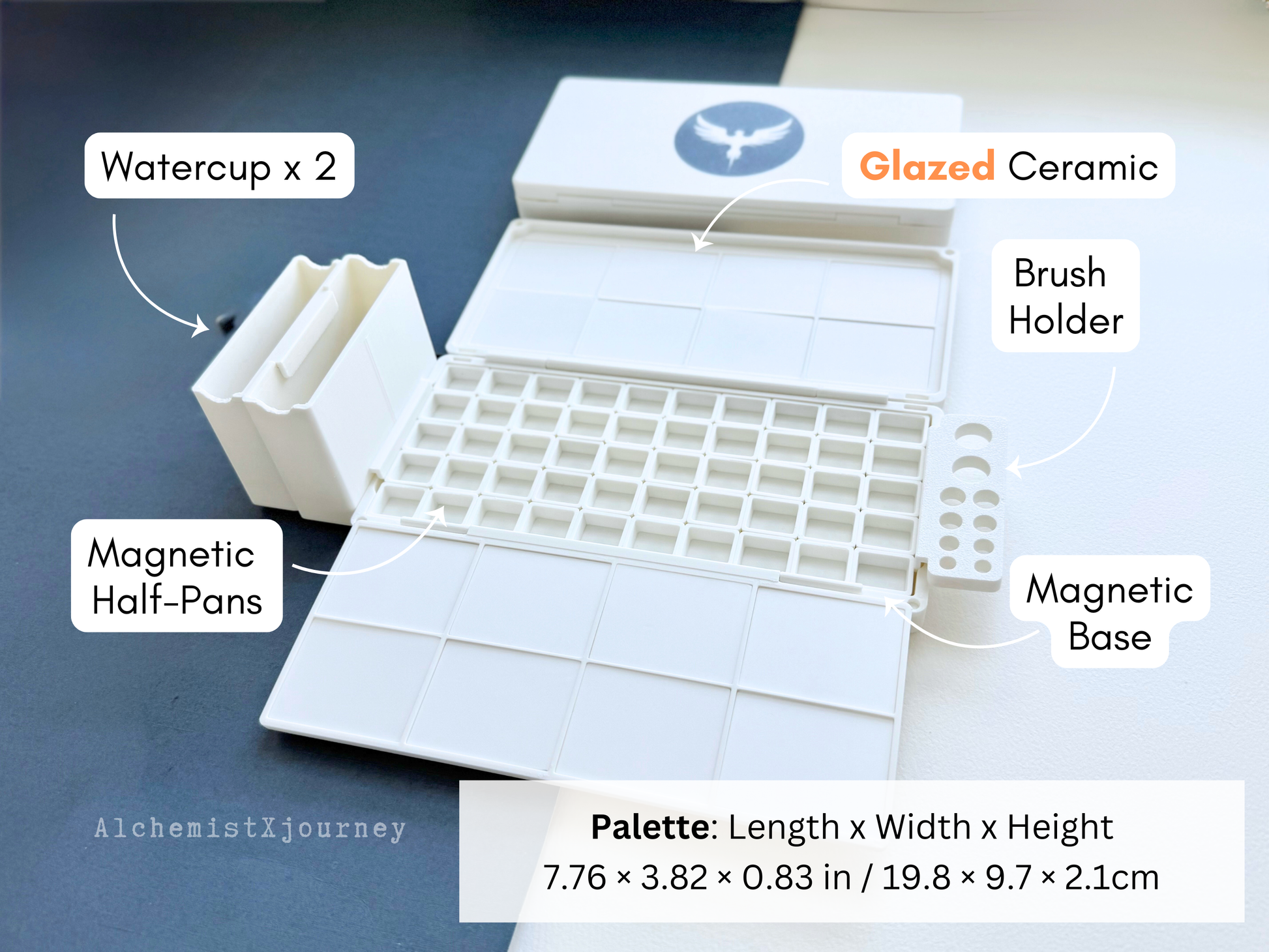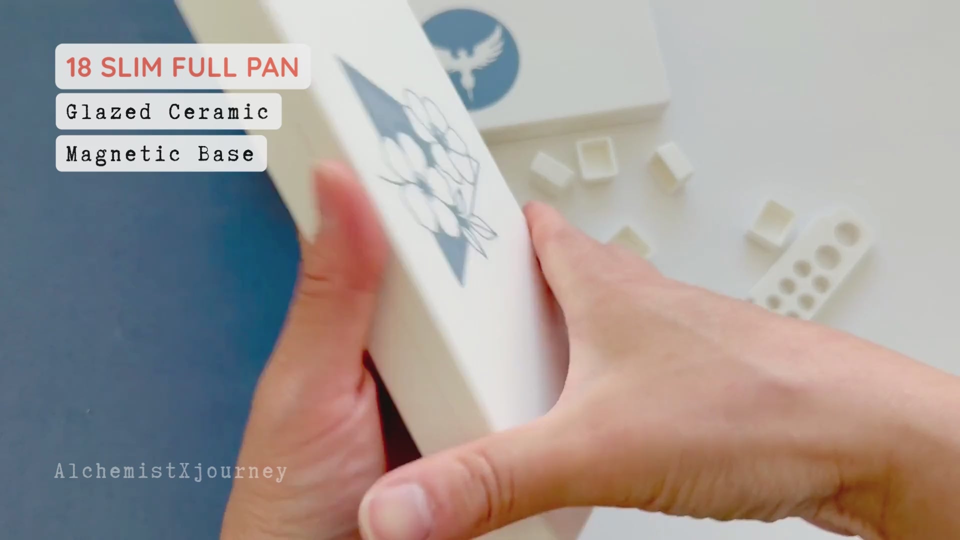 Meet AX12 - Magnetic Adhesion Base Watercolor Palette made from plant-based biopolymer. And now upgraded with a GLAZED CERAMIC mixing tray- smooth, bead-resistant, and easy to wipe clean.