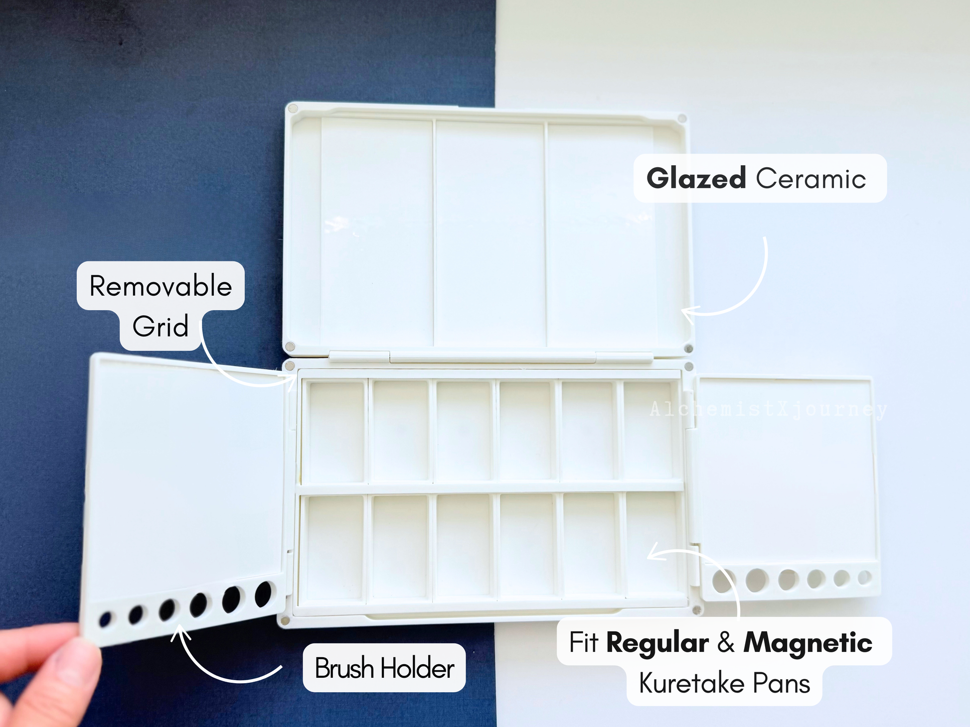 🎨 Option 2: Palette with Glazed Ceramic + 12 Single Kuretake Pans (Regular/Non Magnetic Pans)